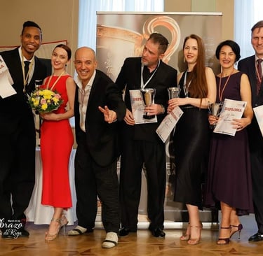 In the picture, from left to right Yakut and Annika winners of the Category Salon and Milonguero of the Baltic Tango Cup held in Riga, Latvia. Horacio "Pebete" Godoy, Liva Krauze and Guntars, 2nd Place in the competition.